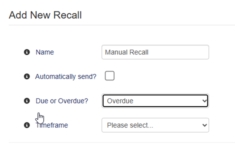 - Select whether to send recalls Via Email, Via SMS, Via Letter, or a combination of these options.